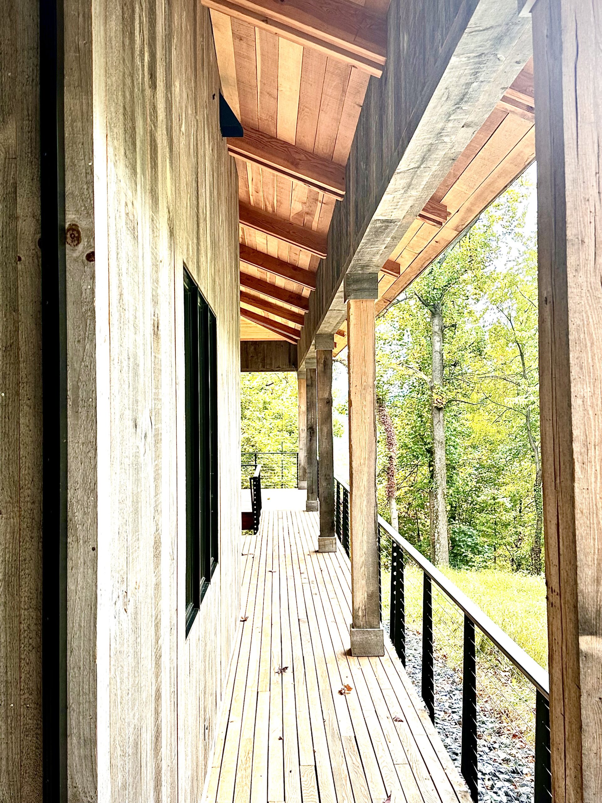 However, realizing this vision meant confronting challenges, chief among them the need to navigate the delicate balance between progress and preservation. To make room for the footprint of the structure, several specimen oak trees had to be removed—a decision not taken lightly. Yet, in a testament to our commitment to sustainability and local craftsmanship, these trees were meticulously milled, kiln-dried, and repurposed as porch columns and decking, infusing the home with a sense of history and heritage.