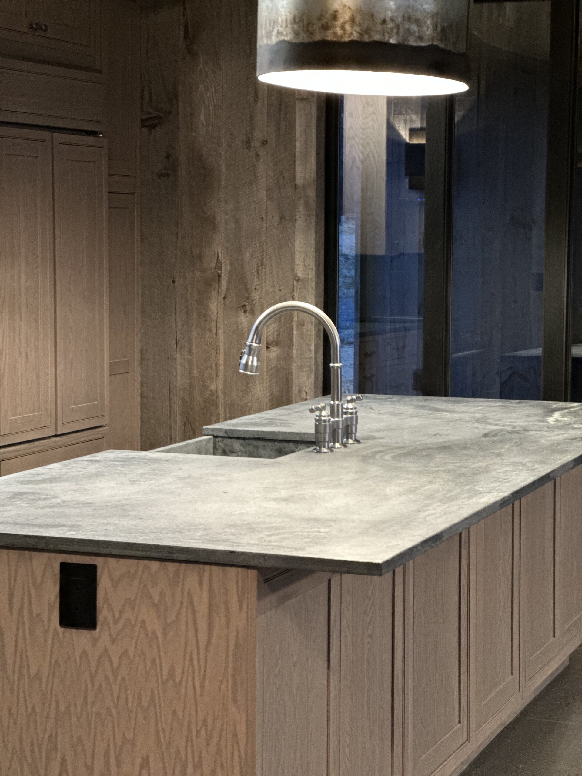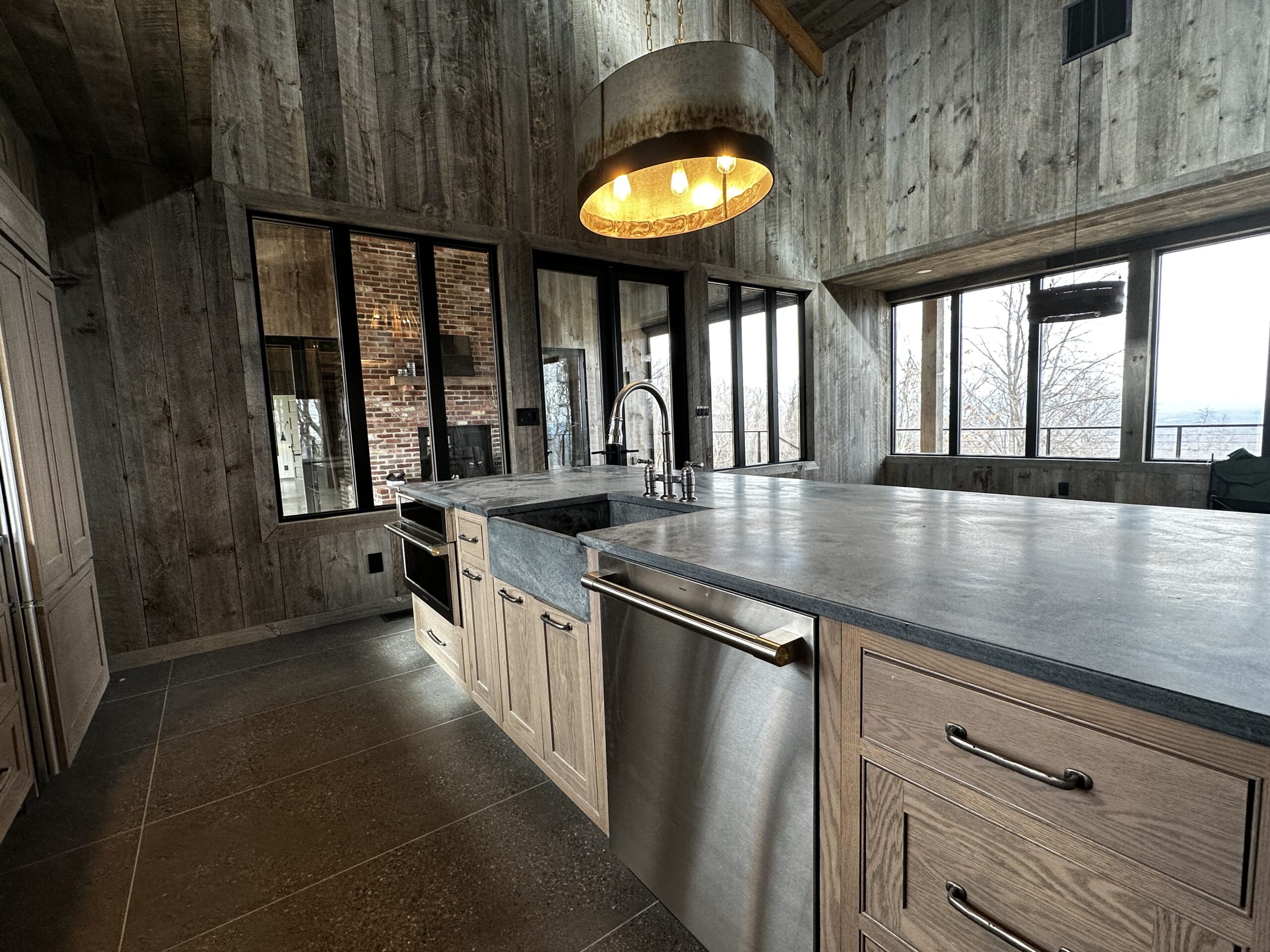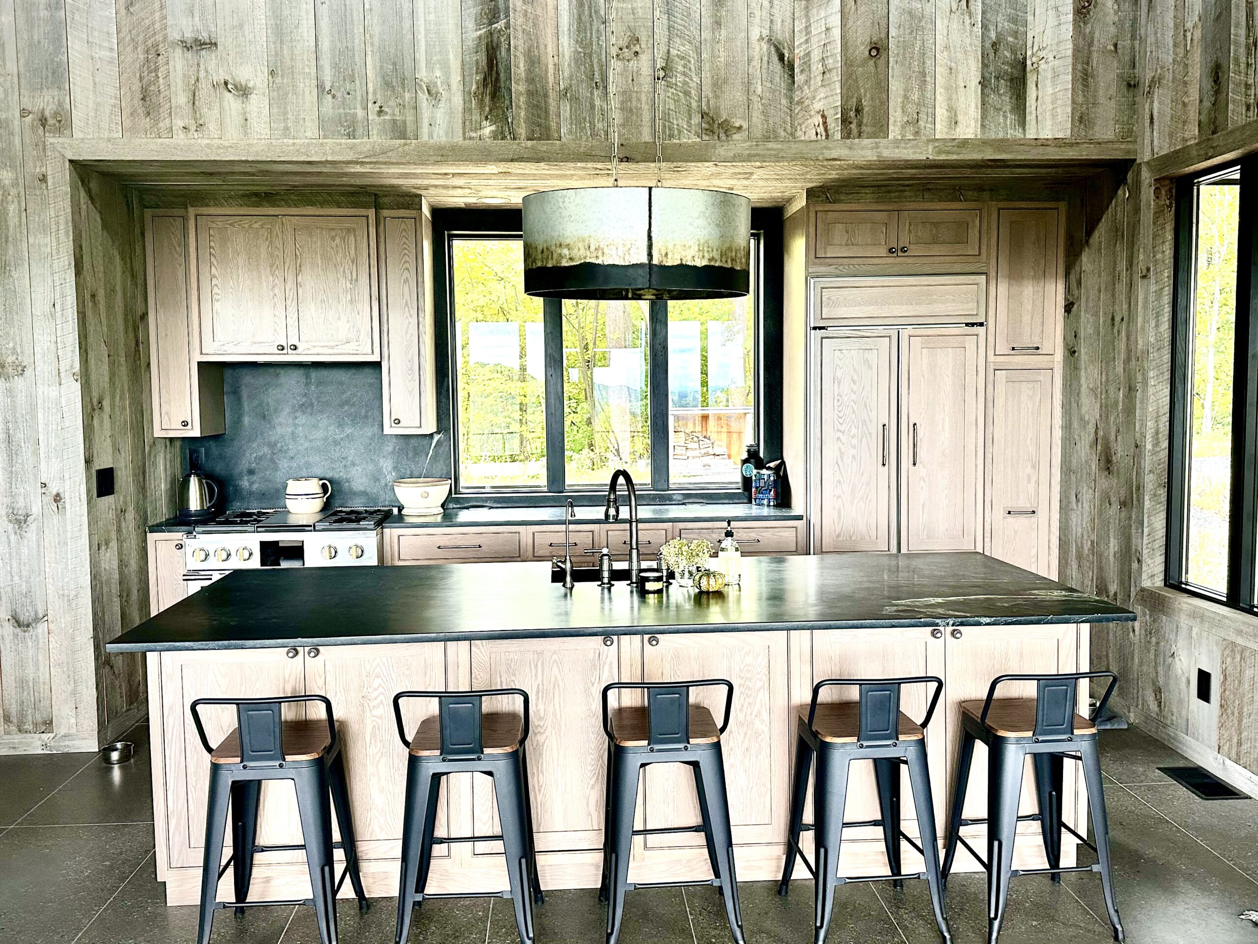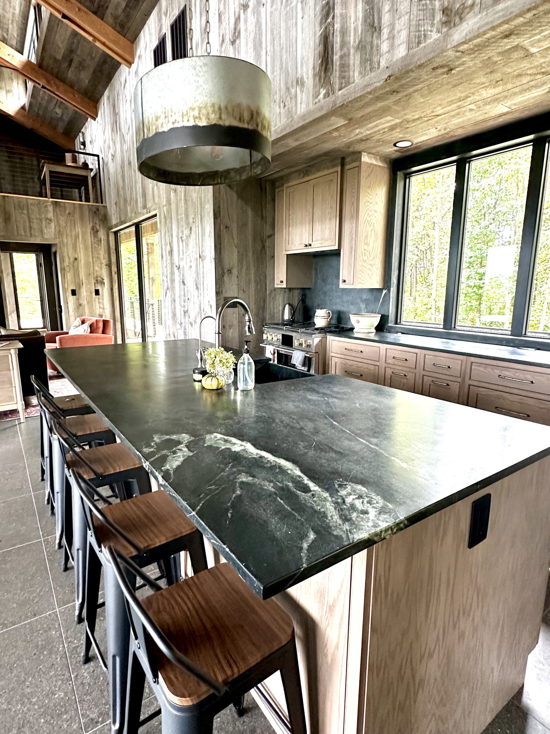 In the heart of the home, locally sourced soapstone countertops from the Alberene quarry in Schuyler served as both a functional surface and a tactile reminder of the region’s natural beauty—a fitting homage to the rich geological heritage of the area.