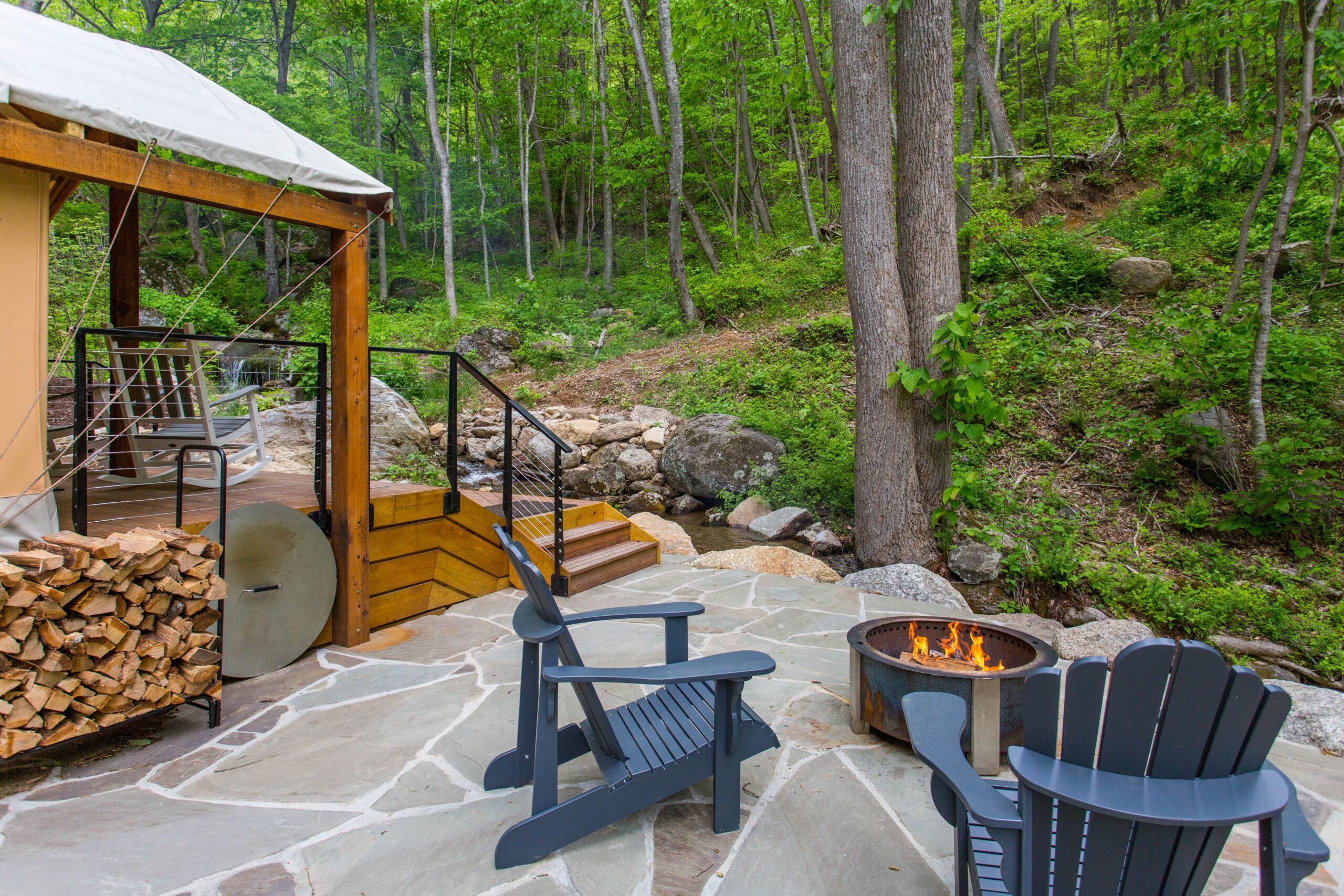 In crafting the glamping experience at the Retreat at Crabtree Falls, our aim was simple: to create a sanctuary where guests could reconnect with nature without sacrificing the comforts of modern living. From the tranquil babble of the stream to the flickering glow of the fire pits, every element was carefully orchestrated to provide a truly unforgettable retreat—a haven for the soul amidst the beauty of the Blue Ridge Mountains.