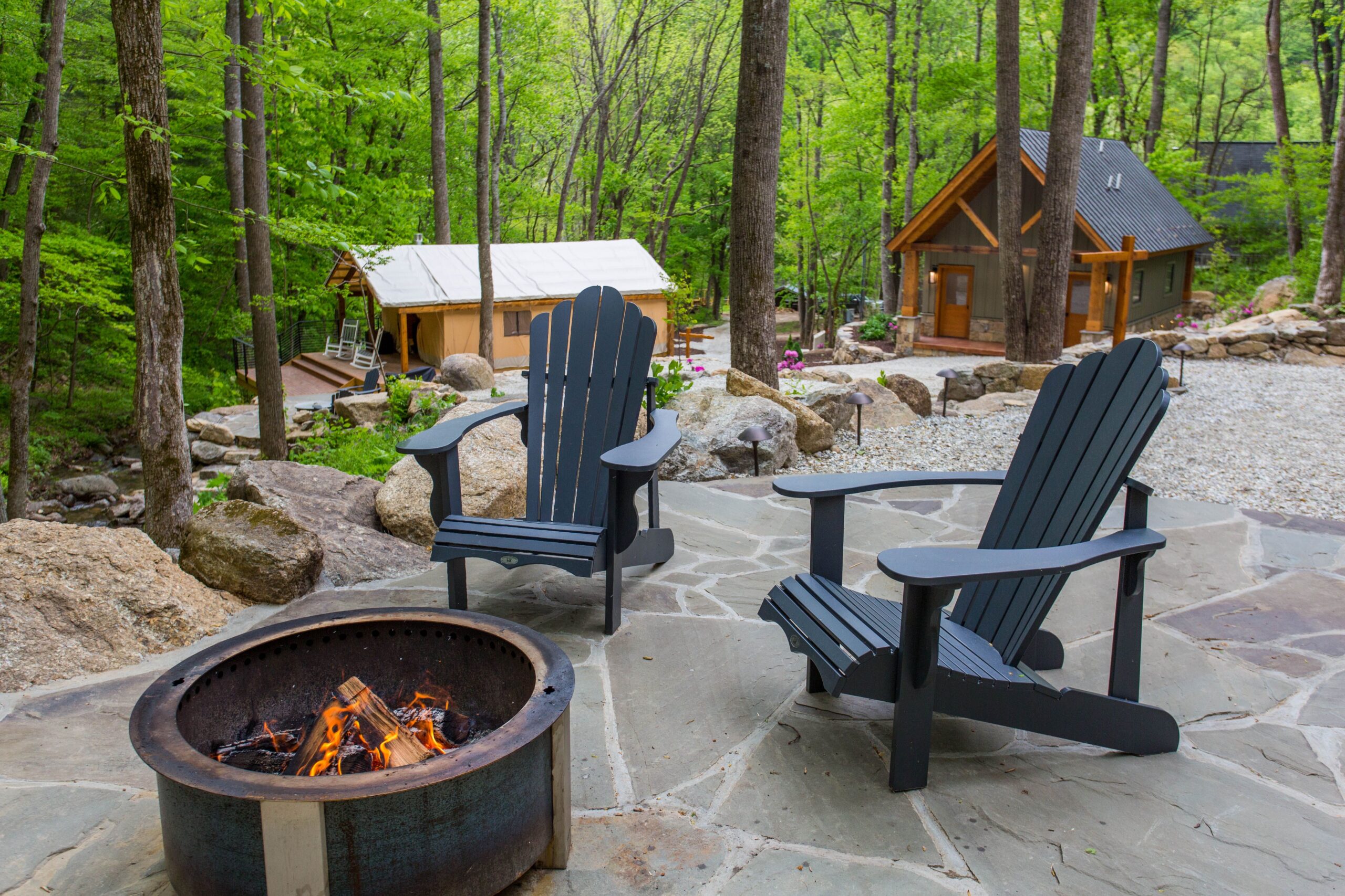 But luxury in the wilderness isn’t just about the accommodations; it’s about the experience. Each glamping site was meticulously crafted to offer guests their own private haven. Irregular flagstone patios provide the perfect setting for gathering around Breeo fire pits, strategically positioned to ensure intimate privacy for every guest.