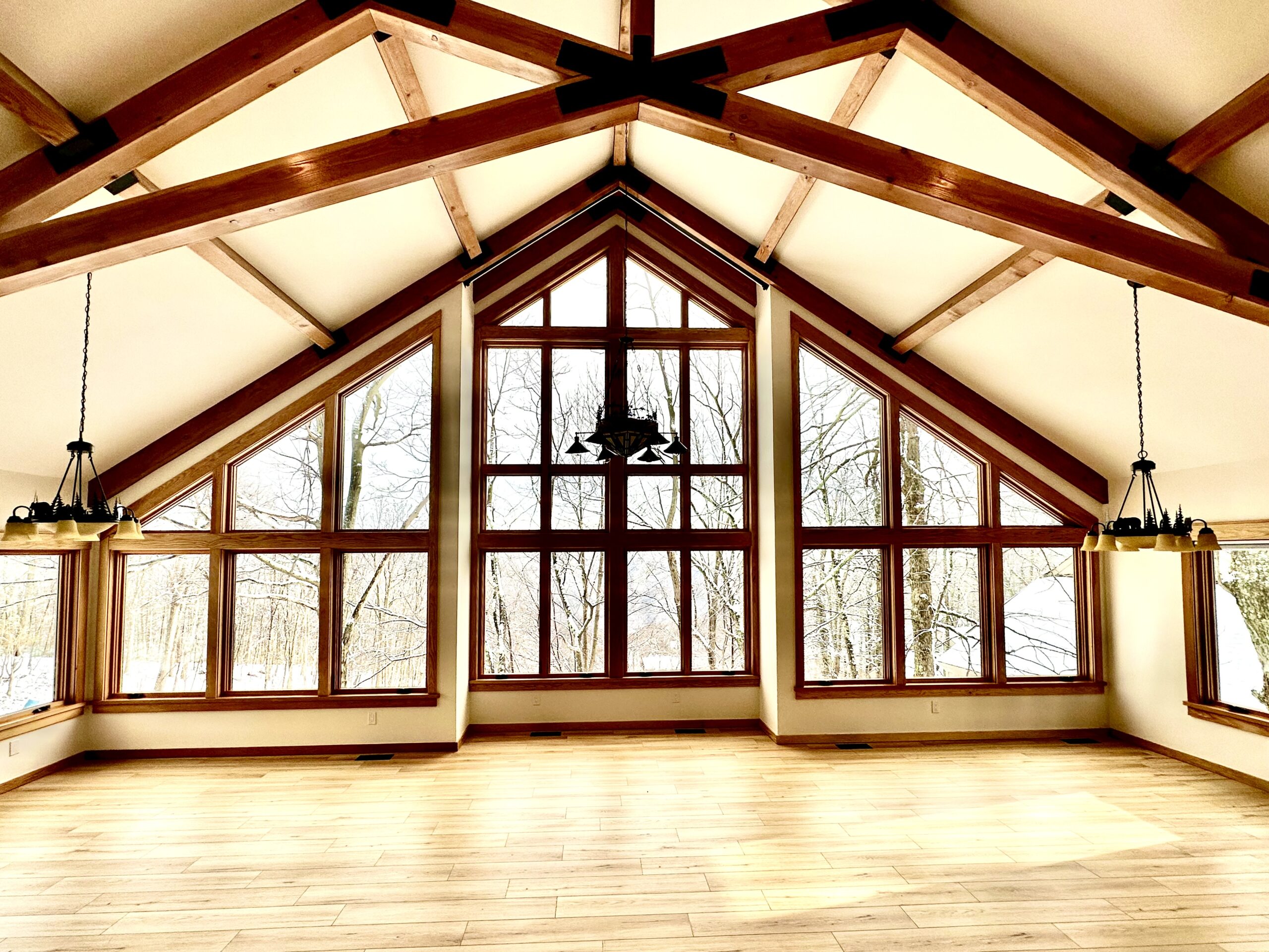 Drawing inspiration from the surrounding environment, the homeowners’ vision took shape with meticulous attention to detail. Site-built fir trusses, crafted with artisanal precision, became the backbone of the structure, infusing the home with a sense of organic authenticity. A humble stone fireplace, anchored the living space, its rugged beauty a nod to the region’s natural heritage.